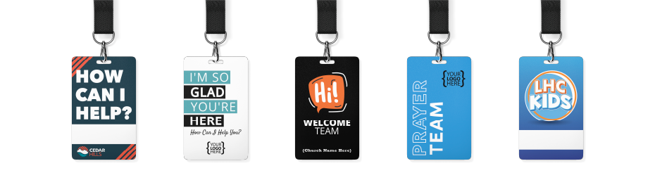 Every ministry can benefit from a customized ID badge. Greeter name badges, usher name badges, production team name badges, children’s ministry name badges, and every other team will find them an important addition to their volunteer uniform.